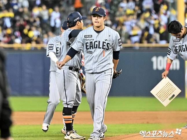 전날과 비교하면 1루수를 보던 채은성이 라인업에서 빠졌고, 대신 김태연이 들어갔다. 하위타순 순서도 이도윤-허인서-이원석으로 바뀌었다.