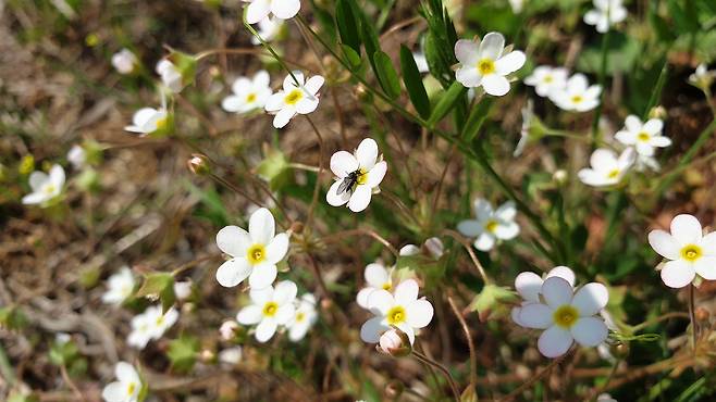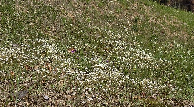 | ▲ 봄맞이 무덤가에서 마주친 봄맞이꽃은 해마다 개체수를 늘려 무리를 이루었다. |