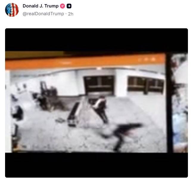 | ▲ 미국 동부시각으로 2026년 4월 25일 오후 8시 36분께 백악관 출입기자단 만찬이 열린 워싱턴 힐튼호텔에 총기를 소지한 남성이 호텔 로비를 돌파하는 장면이 포착된 CCTV 화면. 이후 총격전이 벌어져 용의자가 체포됐다. 도널드 트럼프 대통령이 트루스소셜에 이영상을 게시했다. |