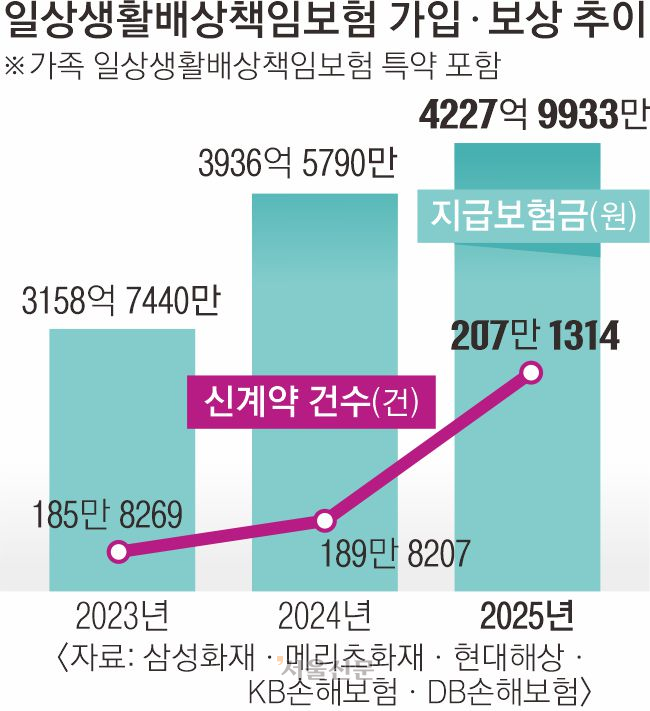 적용 범위는 생각보다 넓다. ▲카페에서 음료 들고 가다 부딪혀 다른 사람 옷을 더럽히거나 ▲길에서 실수로 타인의 휴대전화를 떨어뜨려 파손하거나 ▲앞마당에서 불을 피웠는데 불씨가 남아 옆집으로 번진 경우처럼 의도하지 않은 사고에서 배상 책임이 인정되면 보상 대상이 된다. 손보사 관계자는 “예기치 못한 실수가 곧바로 금전적 부담으로 이어지는 상황이 늘면서 일배책이 일상 속 안전장치 역할을 하고 있다”고 설명했다.