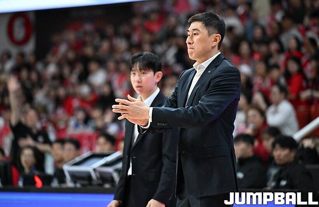 이상민 감독이 이끄는 부산 KCC는 26일 안양 정관장 아레나에서 열린 안양 정관장과의 2025-2026 LG전자 프로농구 4강 플레이오프 2차전에서 83-91로 패했다.