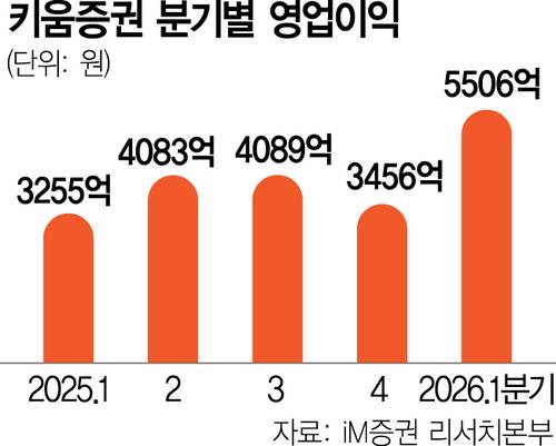 국내 주식 투자 열기를 모바일 증권사가 빨아들이는 가운데 기존 온라인 브로커리지 강자인 키움증권도 톡톡히 수혜를 누리고 있다. iM증권은 1분기 키움증권의 영업이익을 1년 전보다 69.16% 급증한 5506억 원, 다올투자증권은 63.8% 늘어난 5332억 원으로 전망했다. 현 추세면 올해 영업이익 ‘2조 클럽’ 달성도 가능해 보인다. 김지원 다올투자증권 연구원은 “국내물 중심 그리고 개인투자자들의 넥스트레이드(NXT) 중심 시장 일평균 거래 대금의 큰 폭 증가는 키움증권에 유리한 환경”이라고 짚었다.
