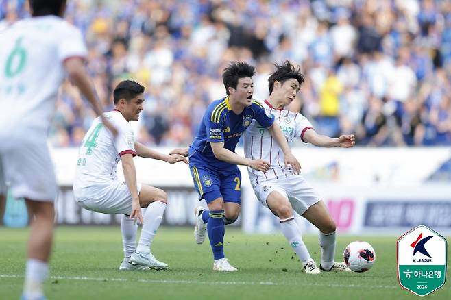 황 감독은 26일 문수축구경기장에서 열린 울산과의 '하나은행 K리그1 2026' 10라운드를 마치고 "마사는 공중에서 허리부터 떨어지면서 허리쪽에 이완되는 느낌이 들었다고 한다. 골절이 의심되지만, 정확한 건 병원에 가서 확인을 해봐야 할 것 같다"라고 우려섞인 표정을 지어보였다.