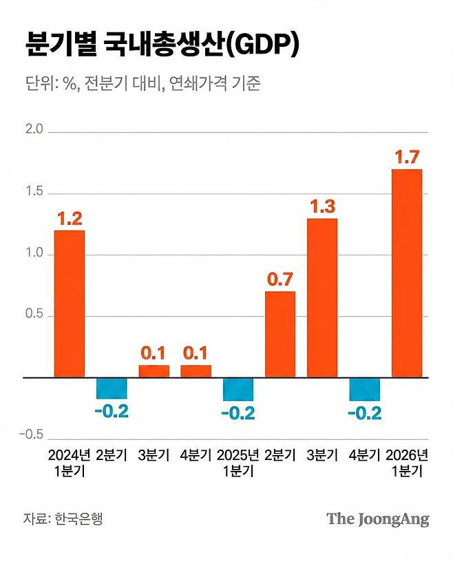 1분기 성장률(1.7%)은 2020년 3분기(2.2%) 이후 약 5년6개월 만에 가장 높은 수준이다. 당초 중동발 전쟁에 따른 유가 급등과 공급망 충격이 성장의 발목을 잡을 것으로 예상했지만, 실제로는 반도체 호황이 이를 압도했다. 신현송 한은 총재는 “한국 경제의 복원력을 보여준다”고 평가했다.
