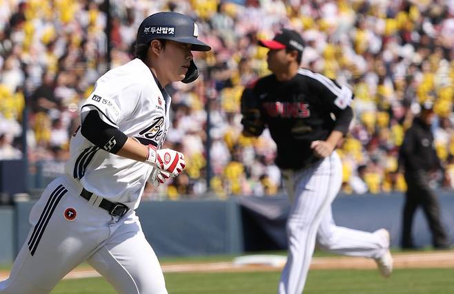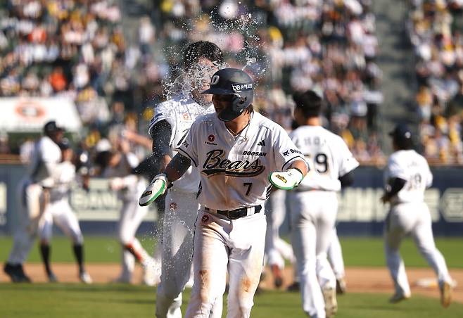 (엑스포츠뉴스 잠실, 김근한 기자) 두산 베어스 내야수 박준순이 구단 역대 최연소 끝내기 안타 기록을 새로 썼다. 3연패 탈출의 주인공이 된 19세 내야수는 정신없이 지나갔다며 환하게 웃었다.