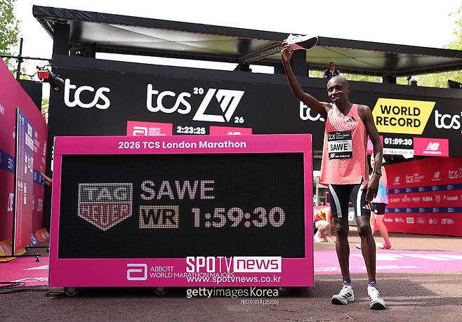 사바스티안 사웨(케냐)는 26일(한국시간) 영국 런던에서 열린 2026 런던 마라톤 남자부 경기에서 42.195㎞ 풀코스를 1시간 59분 30초에 완주하며 가장 먼저 결승선을 끊었다.