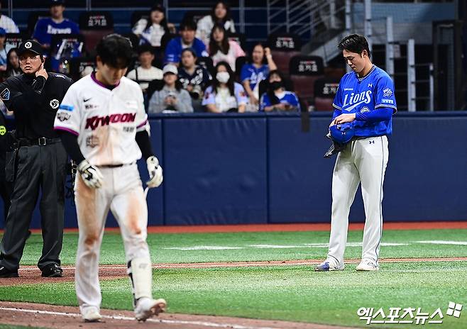 그리고 이 과정에서 삼성도 선수를 교체했다. 투수와 포수가 바뀌었다. 투수 이승현이 마운드로 향했고, 박세혁이 포수 마스크를 썼다. 투수 미야지와 포수 강민호는 자신의 임무를 마쳤다.