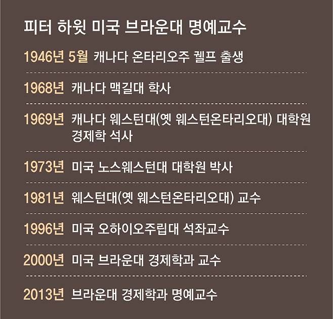 피터 하윗 미국 브라운대 명예교수는 이 문제의 답을 내놓기 위해 ‘창조적 파괴’의 개념을 발전시키고 혁신과 성장의 관계를 규명했다. 그 공로로 지난해 노벨 경제학상을 받았다.