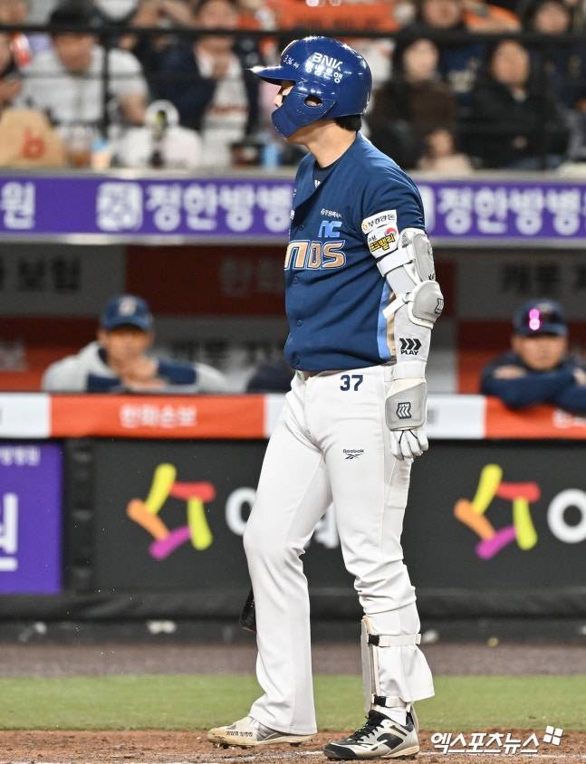 (엑스포츠뉴스 대전, 양정웅 기자) 개막부터 무릎 상태가 좋지 않지만, 박건우(NC 다이노스)는 투혼을 발휘했다.