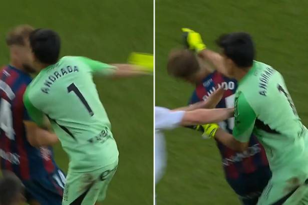 영국 타블로이드지 '더 선'은 27일(한국시간) "스페인 2부리그의 한 스타 선수가 상대 선수에게 달려들어 오른속 훅을 날려 쓰러뜨리는 아찔한 순간이 연출됐다"고 전했다.