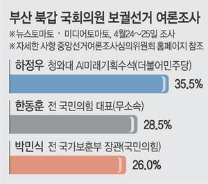 - [속보]부산북갑, 하정우 35.5%·한동훈 28.5%·박민식 26.0%-미디어토마토