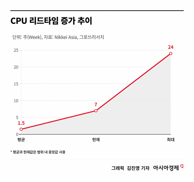 공급망 병목… "돈 있어도 6개월 대기"이처럼 수요는 폭발하고 있지만, 공급은 여의찮다. 서버용 고성능 CPU는 TSMC의 2~3나노(㎚·10억분의 1m) 등 선단 공정에 의존하는데, 이곳은 이미 AI GPU와 모바일 AP(애플리케이션 프로세서)를 생산하려는 글로벌 빅테크(대형 정보기술 기업)들로 문전성시를 이루고 있기 때문이다. 2026년 1분기 기준 TSMC 3나노 공정의 신규 주문 리드타임(발주부터 납품까지의 시간)은 52~78주에 달한다.