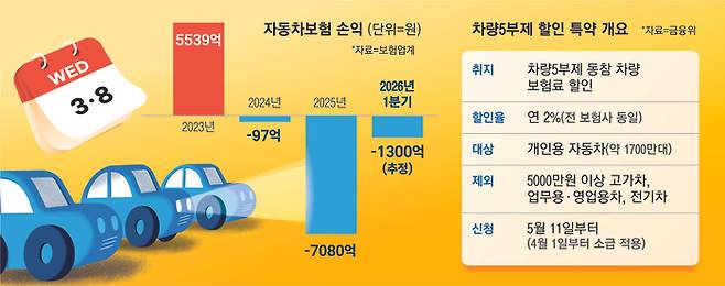차량 2·5부제에 참여하는 차주에게 연간 보험료를 2% 할인해주는 특약 상품이 다음달 나온다.
