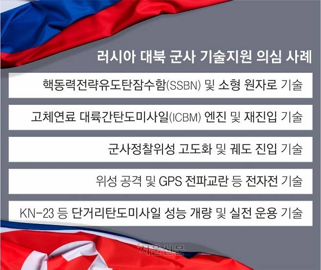 국제사회의 제재에도 고체연료 엔진 개발과 같은 북한의 첨단 군사기술은 꾸준히 발전하고 있다. 그 배경에는 러시아의 지원이 있다는 의혹이 제기돼 왔다. 특히 북한이 2024년 8월 우크라이나 전쟁에 파병을 결정한 이후 군사 협력이 더 활발해진 모습이다. 지난해 12월 북한이 공개한 8700t급 핵동력전략유도탄잠수함(핵추진잠수함)의 핵심 추진체계인 소형 원자로는 러시아 퇴역 핵잠에서 넘어왔을 가능성도 거론됐다.