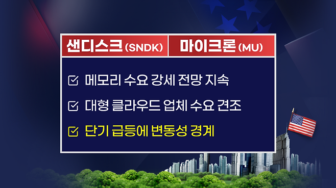 이같은 분석에 힘입어 마이크론은 간밤 뉴욕증시에서 5.6%, 샌디스크는 8.11% 상승했습니다.