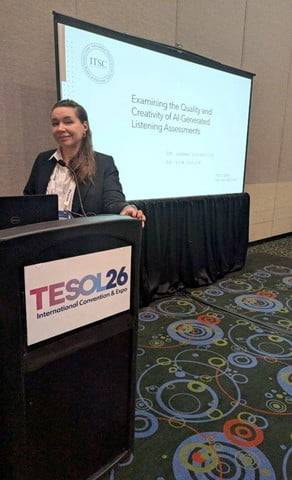 ITSC GROUP은 최근 TESOL 2026 Convention에서 발표된 ‘AI 기반 듣기 평가의 품질과 창의성(Examining the Quality and Creativity of AI-Generated Listening Assessments)’ 연구를 통해 AI가 생성한 영어 듣기 평가 문항의 가능성과 한계를 분석하고, 평가의 질적 수준을 유지하기 위한 방향을 제시했다. 이번 연구는 ITSC GROUP의 Dr. Janna Schaeffer와 Dr. Kym Taylor가 공동으로 발표했다.