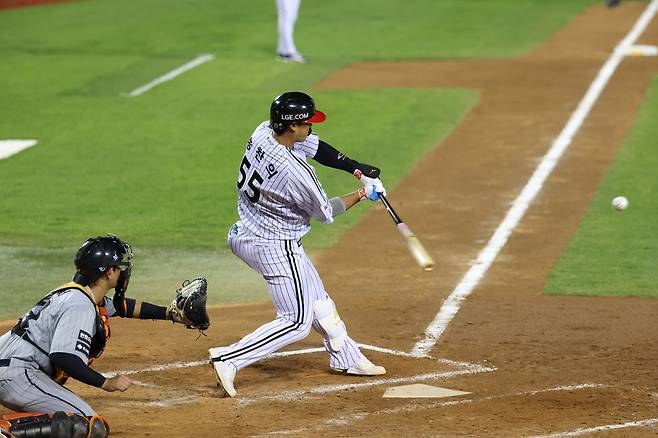 이날 LG는 홍창기(우익수)-천성호(3루수)-오스틴(1루수)-문보경(지명타자)-송찬의(좌익수)-오지환(유격수)-박해민(중견수)-박동원(포수)-신민재(2루수) 순으로 타선을 구성했다. 염 감독은 “(문)성주가 복근 쪽에 뭉침 증상이 있어 사흘 정도는 대타로만 활용해야 할 것 같다”라면서 “요즘 (송)찬의가 잘 치고 있어서 성주와 찬의 중에 누구를 라인업에 넣어야 할까 고민했는데, 자연스럽게 해결됐다”라면서 “제 입장에선 성주와 찬의가 가장 잘 치고 있는 타자들이라 둘 다 쓰는 게 제일 좋다. 성주 5번, 찬의 6번을 구상하고 있었는데, 성주가 복근 쪽에 뭉침이 생겨서 이렇게 라인업이 구성됐다”라고 설명했다.