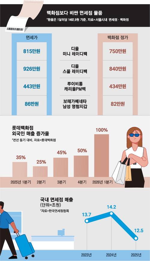 환율은 외국인뿐 아니라 내국인 대상 매출에도 큰 영향을 미치고 있다. 면세업계 관계자는 "원·달러 환율이 1400원대 후반으로 내려온 현재 중동 전쟁 여파로 1538원까지 치솟았던 4월 초보다 내국인 객단가가 약 14% 높게 나타나고 있다"며 "특히 고가 시계·보석·럭셔리 패션 등 상품 단가가 높은 카테고리일수록 환율 민감도가 높다"고 설명했다.