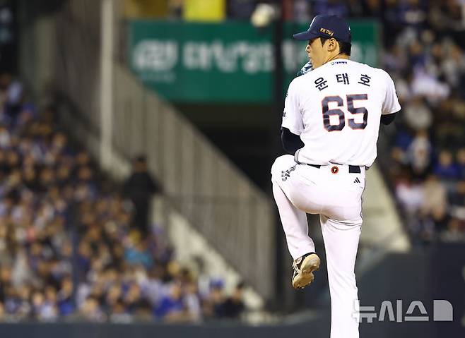 [서울=뉴시스] 황준선 기자 = 28일 서울 송파구 잠실야구장에서 열린 2026 KBO 리그 삼성 라이온즈와 두산 베어스의 경기, 7회 초 두산 윤태호가 역투하고 있다. 2026.04.28. hwang@newsis.com