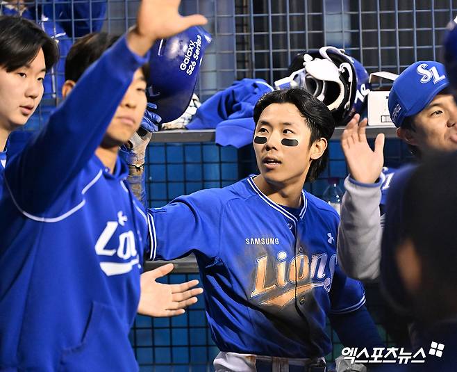 김성윤은 이후 디아즈의 우익수 뜬공 때 태그업 후 여유 있게 홈 플레이트를 밟았다. 삼성에 1-0 리드를 안기는 선취 득점을 올리면서 테이블 세터 역할을 톡톡히 해냈다.