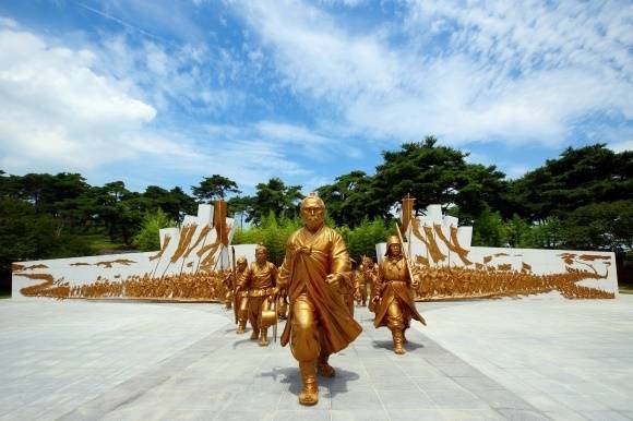 | ▲ [불멸의 바람길]전봉준 장군과 동학농민군상. 2022년 정읍 황토현에 세워진 전봉준 장군과 동학농민군상 [불멸-바람길]이다. 정읍시는 지난 2021년 황토현 전적에 있었던 전봉준 장군 동상을(친일 조각가 문제)로 철거했다. 이후 세운 동학농민혁명군상이 바로 사진의 군상이다. 본 사진은 정읍시에서 홍보용으로 공개한 전봉준 장군과 동학농민군상 사진이다. |