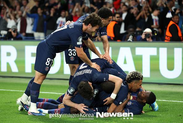 이후 뮌헨의 파상공세가 이어졌으나 PSG의 골문은 열리지 않았다. PSG도 세니 마율루의 슈팅이 골대를 강타하면서 추가 득점하지 못했다. 9골이 터진 난타전은 홈팀 PSG가 1골 차 승리를 거뒀다.(사진=PSG 선수단)