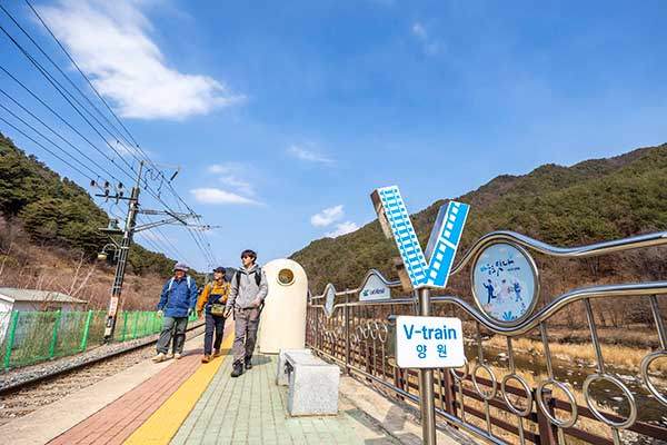 이번 트레킹은 양원역에서 분천역으로 51구간 역방향 진행이다. 51구간은 어느 방향으로 걸어도 크게 상관없는데 차량 회수가 용이한 역방향을 택했다. 양원역에 도착하자 텅 빈 대합실과 승강장에 음성경보기 소리만 요란하다.