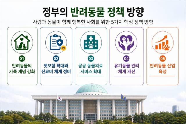 정부가 구상하는 반려동물 정책의 방향은 이미 정해져 있다. 반려동물의 가족 개념 강화, 펫보험 확대와 진료비 체계 정비, 공공 동물의료 서비스 확대, 유기동물 관리 체계 개선, 반려동물 산업 육성 등이 핵심 과제로 추진되고 있다