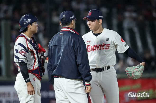 김원중은 베테랑 타자 안치홍에게 유격수 땅볼을 유도해 병살타를 끌어냈다. 후속 타자이자 앞서 안타 2개를 친 김건희와의 승부에서도 포심 패스트볼(직구)을 결정구로 삼진을 잡아냈다. 4월 초까지 140㎞/h 중반에 그쳤던 직구 구속이 후반까지 올라왔다.
