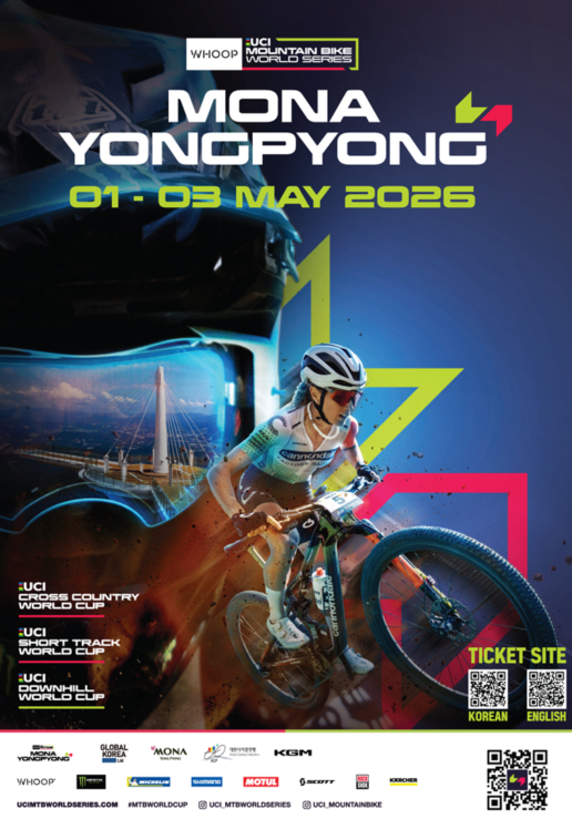 ‘2026 후프 국제사이클연맹 산악자전거 월드시리즈-모나용평’은 5월 1일부터 3일까지 발왕산 일원에서 열린다. 국제사이클연맹(UCI)과 워너브라더스 디스커버리 스포츠(WBD) 체계 아래 운영되는 2026시즌 공식 개막 라운드로, 유럽과 북미 중심의 MTB 월드시리즈가 아시아에서 열리는 첫 사례다.