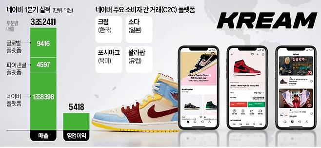 매출이 증가한 이유는 커머스(쇼핑)에 있다. 약 1000만 명으로 알려진 네이버플러스 멤버십 가입자와 검색으로 유입된 이용자들이 네이버에서 물건을 많이 샀다는 의미다. 쇼핑이 포함된 네이버 플랫폼 서비스 1분기 매출은 4453억원으로 1년 전보다 36% 급증했다.