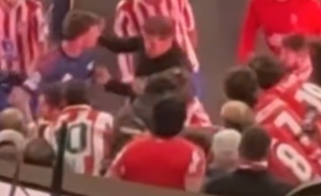 디에고 시메오네 감독이 벤 화이트와 격렬한 몸싸움을 벌였다.