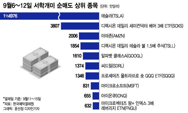 서학개미들이 지난 6~12일 사이에 가장 많이 순매도한 종목은 테슬라로 1억4976만달러를 팔아치웠다.