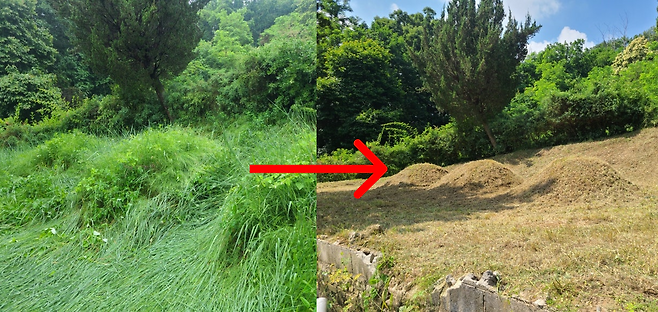 잡초가 너무 억세고 길어서 벌초하는 내내 힘드셨을 텐데 최선을 다해 완성도 높게 작업해 주셔서 감사합니다.가격도 너무 합리적이어서 고수님께 부탁하길 잘한 것 같아요. 다음에도 부탁드릴게요! 작업 사진으로 이미 설명이 다 되네요. 너무 고생하셨어요!