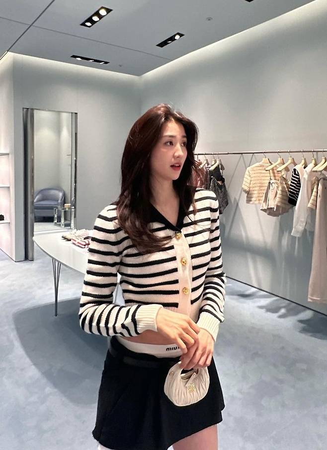 배우 박하선이 초미니 스커트와 크롭 니트 카디건의 프레피룩으로 시선을 강탈했다.