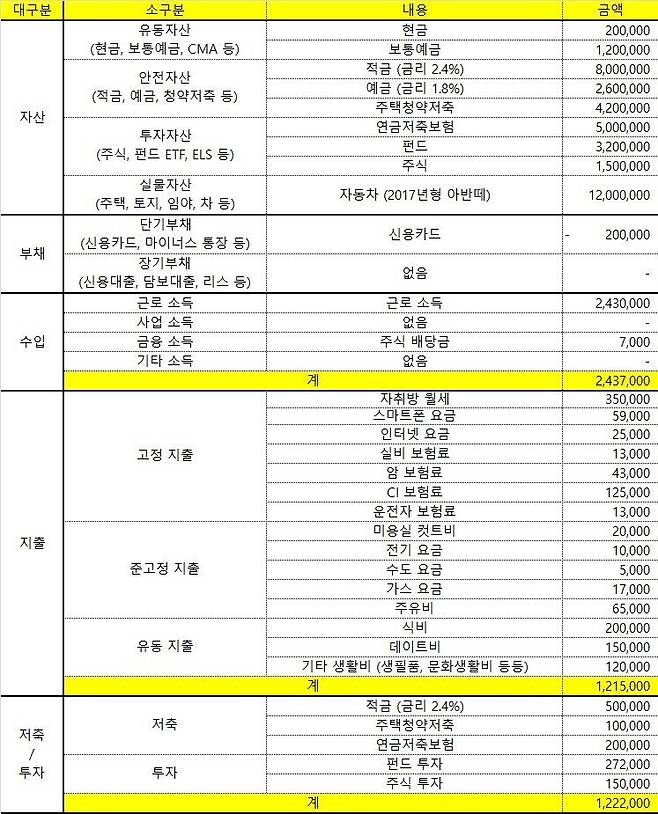여기서 스크롤을 내리지말고 스스로 재정상태표를 정리해보세요. 분명 도움이 됩니다.