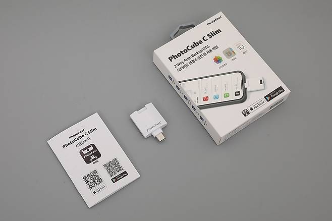 마이크로SD까지 삽입했으면 이제 USB C타입 포트를 가진 스마트폰에 직접 장착하면 되는데, 그 전에 우선 전용 앱을 설치하는 과정이 남아 있다. 전용 앱 링크는 사용 설명서 표지에 아이폰용과 안드로이드용 QR코드가 제공되고 있어서 간편하게 스캔해서 설치할 수 있다.