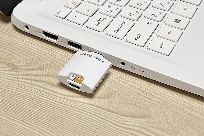 알로코리아 포토패스트 포토큐브 S에 메모리카드를 장착한 상태로 PC나 노트북의 USB C타입 포트에 연결하면 USB 메모리카드처럼 저장장치로 인식되기 때문에 마이크로SD에 백업한 자료를 PC로 옮기는 것도 가능하다.