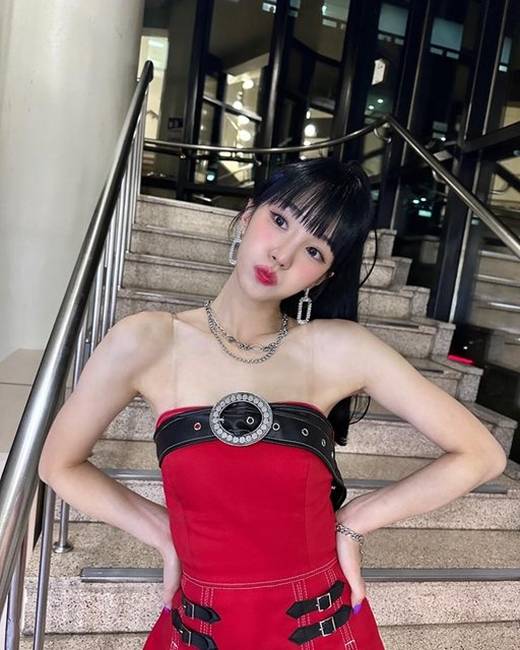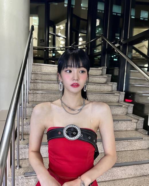 KBS 2TV '뮤직뱅크' 출연을 위해 찾은 방송국에서 찍은 사진으로 보인다. 붉은색 오프숄더 의상을 차려입고 화려한 주얼리로 패션에 포인트르르 준 나나가 몽환적인 표정을 지으며 계단 앞에서 포즈 취하고 있다. 나나 특유의 커다란 눈 등 인형 같은 미모가 돋보인다. 입술을 모은 채 찍은 사진에선 나나의 귀여운 매력도 느껴진다.