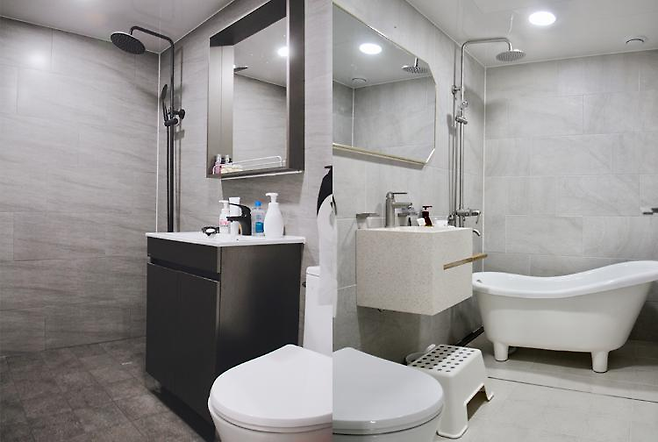 거실 화장실과 안방 화장실인데요. 같은 화장실이라도 분위기를 다르게 연출해 봤어요.