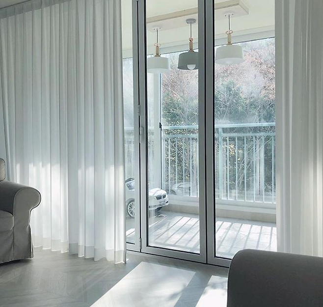 저희 집의 가장 큰 장점은 넓고, 뒤편에 동산이 있어 푸른 나무를 늘 볼 수 있는 베란다인 것 같아요.