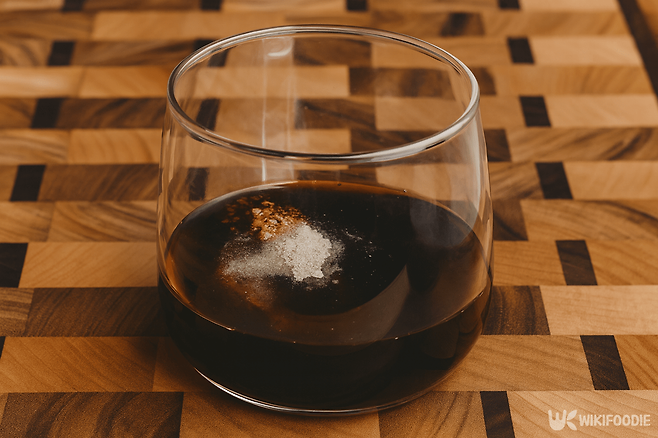 마무리로 참기름 1큰술(15ml)과 통깨 1큰술(15ml)을 넣어 고소한 향을 더한다. 매운맛을 원한다면 베트남 고추 5개를 잘게 썰어 함께 넣는다. 은은한 매운 향이 간장 소스의 단짠한 맛과 어울려 술안주로도 잘 맞는다.