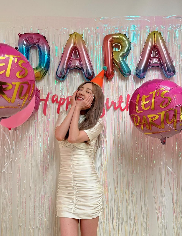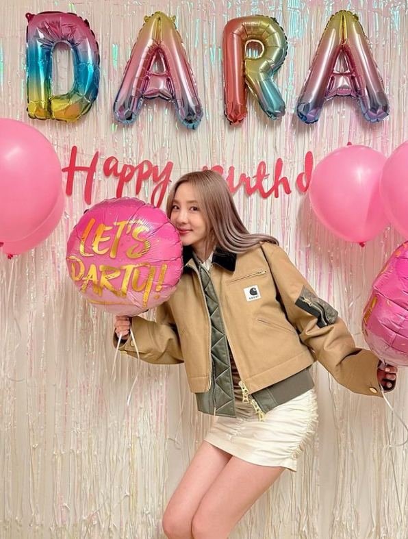 산다라박은 생일파티에서 반짝이는 소재의 슬림핏 미니 드레스를 선보여 눈길을 끌었다.