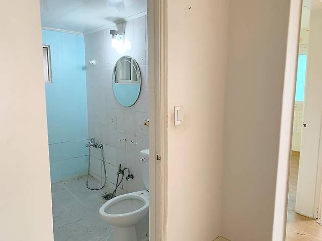 그래서 이번에 화장실을 수리하면서 거실과 동일한 마루로 바닥을 마감하고 세면대는 욕실 밖으로 꺼내주었어요. 덕분에 이제는 한겨울에도 맨발로 화장실에 들어갈 수 있게 되었습니다.