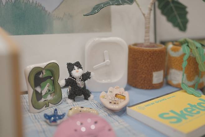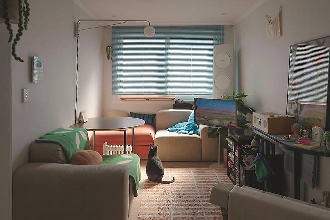 거실 곳곳에는 함께 사는 검정고양이를 닮은 아기자기한 소품이 놓여 있어요. 고양이가 그 옆을 지날 때마다 얼마나 잘 어울리는지 모릅니다.