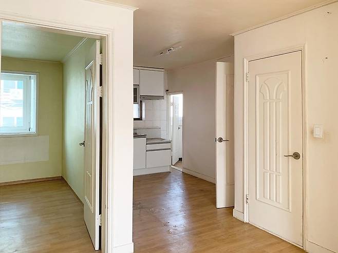 처음 만났던 집은 90년대생, 그 시절 빌라 그 자체였어요. 도배장판 외에는 지어진 그대로를 유지하고 있었습니다. 창호 주변으로는 단열이 안되어 결로 문제도 있었고, 평수에 비해 안방만 크고 주방 및 다른 방들이 아주 협소해서 공간 구성에 고민이 많았습니다.