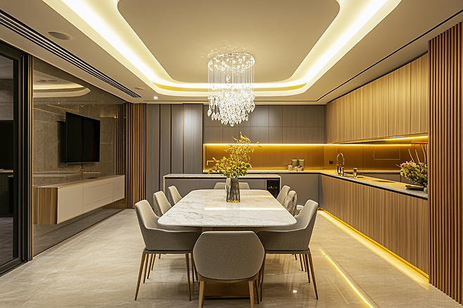 - 특히 거실이나 다이닝 공간은 조명 디자인에 신경 쓰면 한층 더 세련된 느낌을 연출할 수 있습니다.