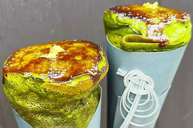 이곳의 대표 메뉴는 '말차브륄레'이죠. 크레페에 아이스크림과 크림을 듬뿍 넣고 브륄레를 만들어 주는데요.
