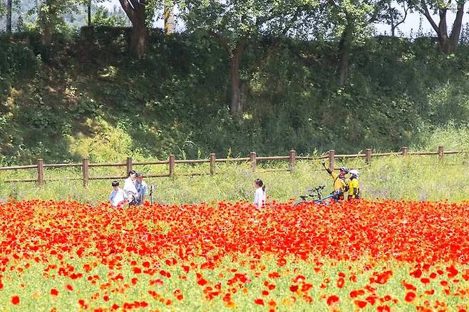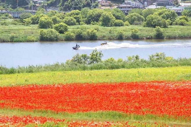 강변을 붉게 물들이는 꽃양귀비