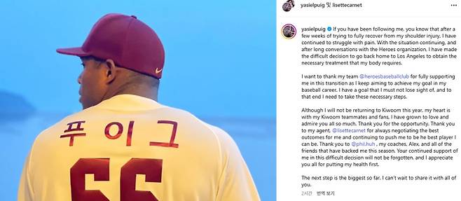 야시엘 푸이그(35)가 키움 히어로즈팬을 향해 작별 인사를 전했다.